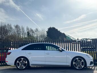 *** JUST BEEN SERVICED*** 3 MONTHS PARTS AND LABOUR NATIONWIDE WARRANTY*** FINANCE AVAILABLE*** NATIONWIDE DELIVERY AVAILABLE*** SAT NAV MEDIA SYSTEM/ DAB RADIO/ PADDLE SHIFT GEAR CHANGE/ CRUISE CONTROL/ SPEED LIMITER/ APPLE CAR PLAY/ ANDROID CONNECT/ AUTO LIGHTS/ ELECTRIC HANDBRAKE/ FOLDING MIRRORS/ ALLOY WHEELS/ DAY TIME RUNNING LIGHTS/ AND MUCH MORE. Welcome to Lakeside automotive. This 2019 Audi A4 TFSI Black Edition is a superb example, having had only one owner since new. This stylish saloon features a 2.0 litre petrol engine and meets Euro 6 emission standards. It comes equipped with a host of desirable features, including LED headlights with dynamic rear indicators, a light and rain sensor for automatic light activation, and the convenient Parking System Plus with front and rear sensors to aid manoeuvring. Inside, you'll find Deluxe 3-zone electronic climate control to keep everyone comfortable, and a Bluetooth interface for seamless connectivity. The Audi A4 TFSI Black Edition offers a refined driving experience, and this particular model stands out with its low CO2 emissions and placement in a low insurance group, indicating it is more economical to run than many similar vehicles. These factors, combined with its single owner provenance and comprehensive feature set, make this A4 a compelling choice for those seeking quality and practicality.
